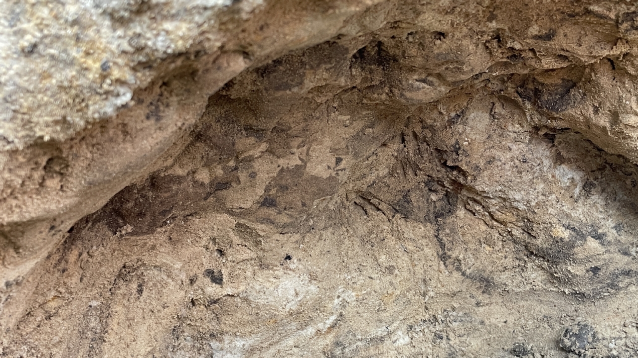 Dit is het eind van het hol. Hier wordt de grond onder het spoor te hard, te zien aan de nagelafdrukken van de graafsporen van de das.