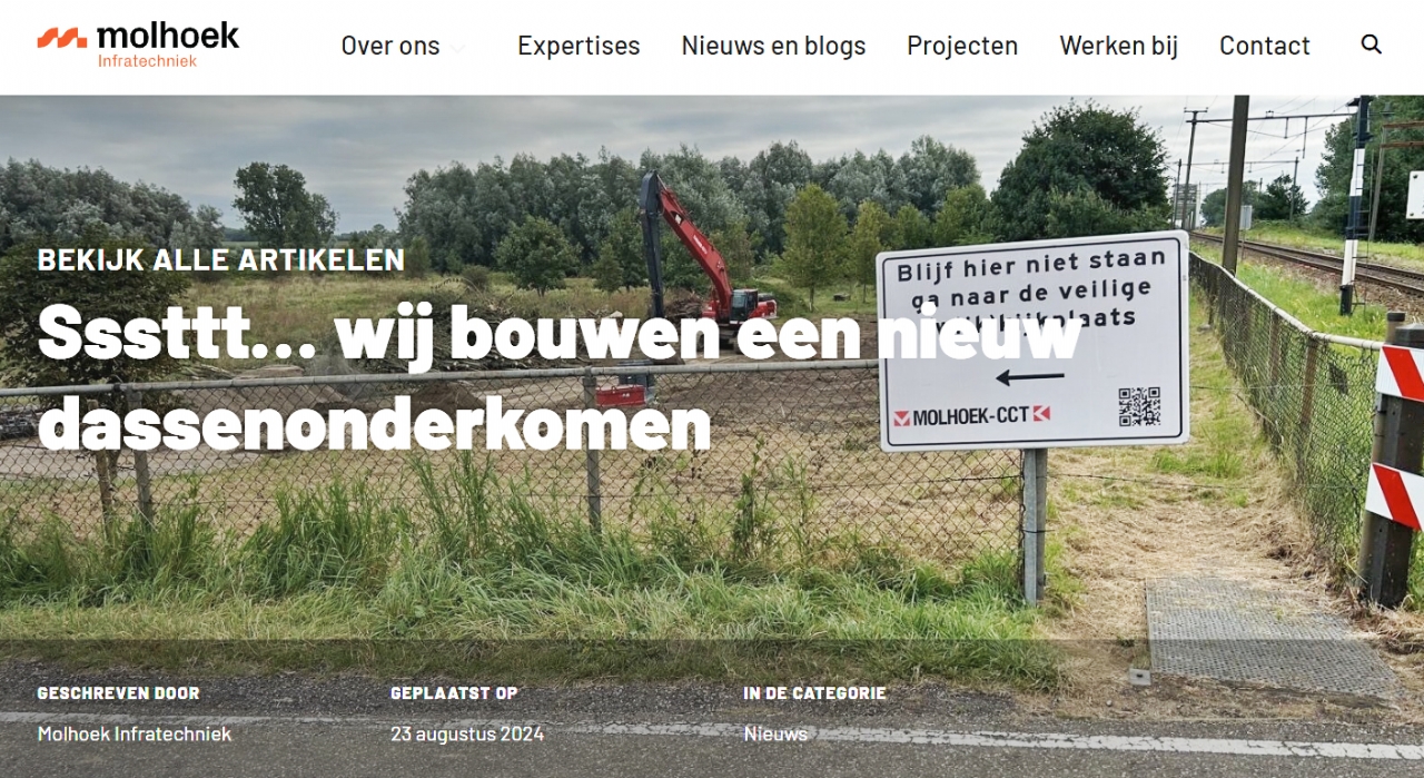 Meerdere organisaties en aannemers werken mee aan de bouw van kunstburchten in samenwerking met Das&Boom. Wat bijzonder is, is dat zij zich actief inzetten voor natuurbehoud en oprecht betrokken zijn bij het welzijn van de das. Dit gaat verder dan alleen de technische uitvoering: ze dragen bij aan duurzame oplossingen en helpen bij het behoud van leefgebieden. Via onderstaande links kun je lezen wat deze bedrijven daarover te melden hebben: