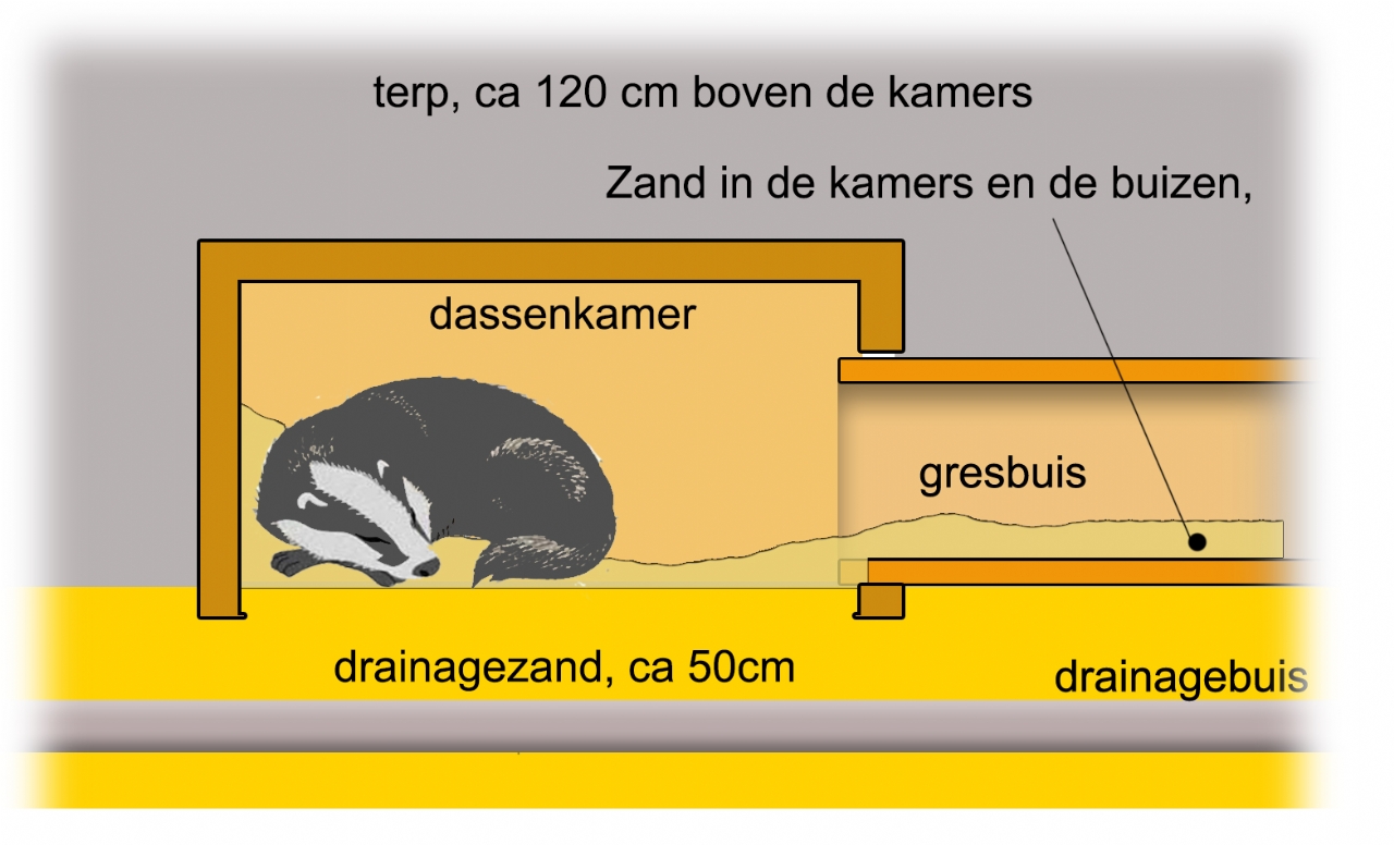 Moderne kunstburchten, die ik heb ontwikkeld voor Das&Boom, zijn volledig afgestemd op de basisbehoeften van de das. Daarbij gaat het om het creëren van een rustige en veilige locatie: een plek met optimale beschutting, zonder tocht, water en inkijk in de burcht. Verder is er aandacht voor een doorlopende ondergrond in de tunnels en kamers, een stabiel binnenklimaat en het gebruik van geurloze en natuurlijke materialen. Ook is er rekening gehouden met uitbreidingsmogelijkheden en voldoende ruimte voor de hele familie,