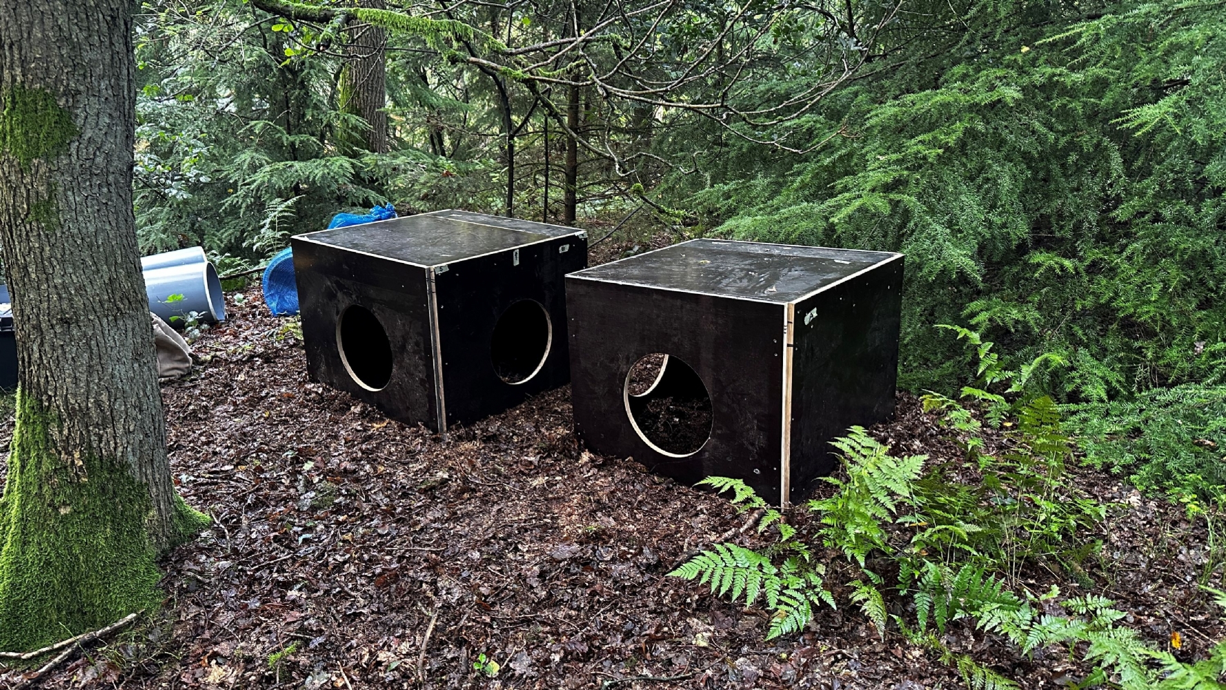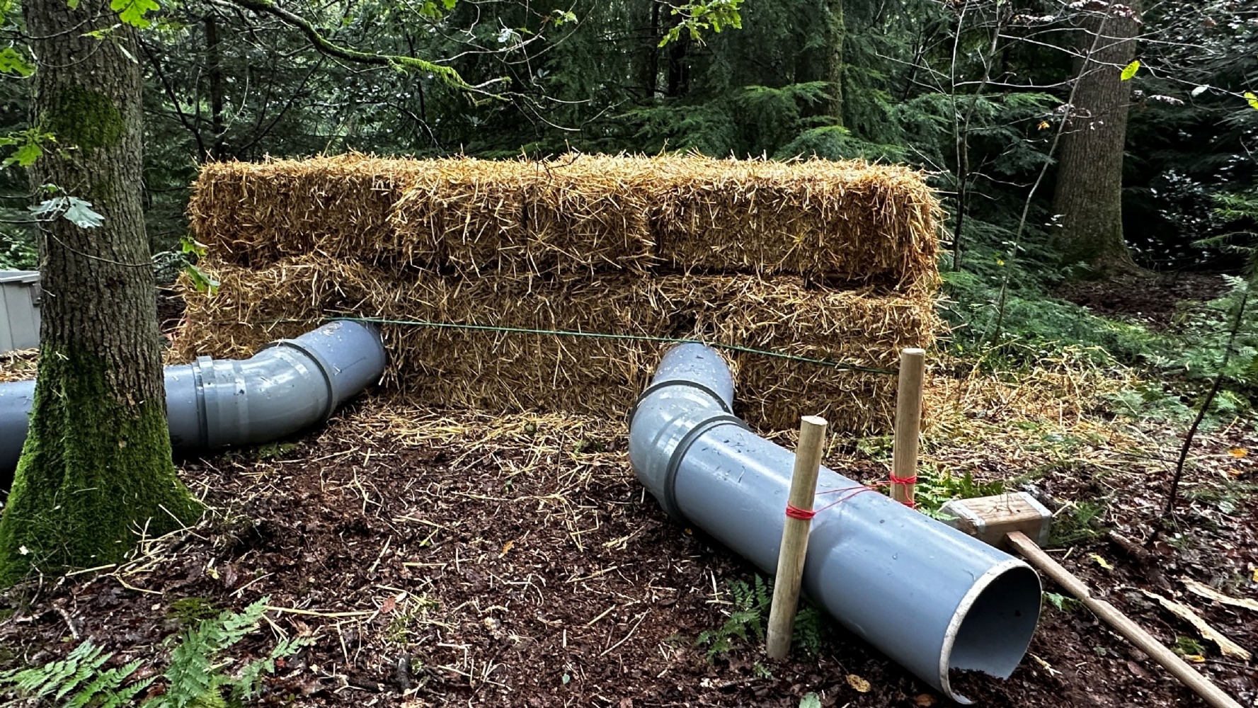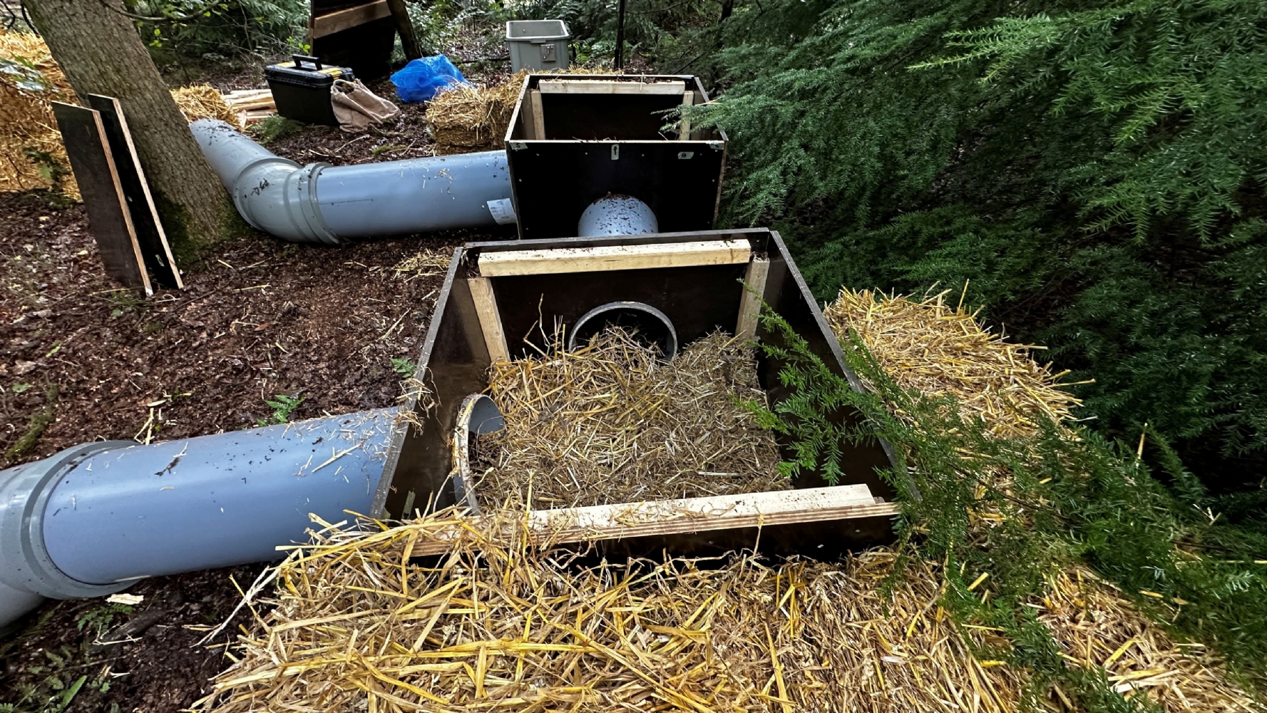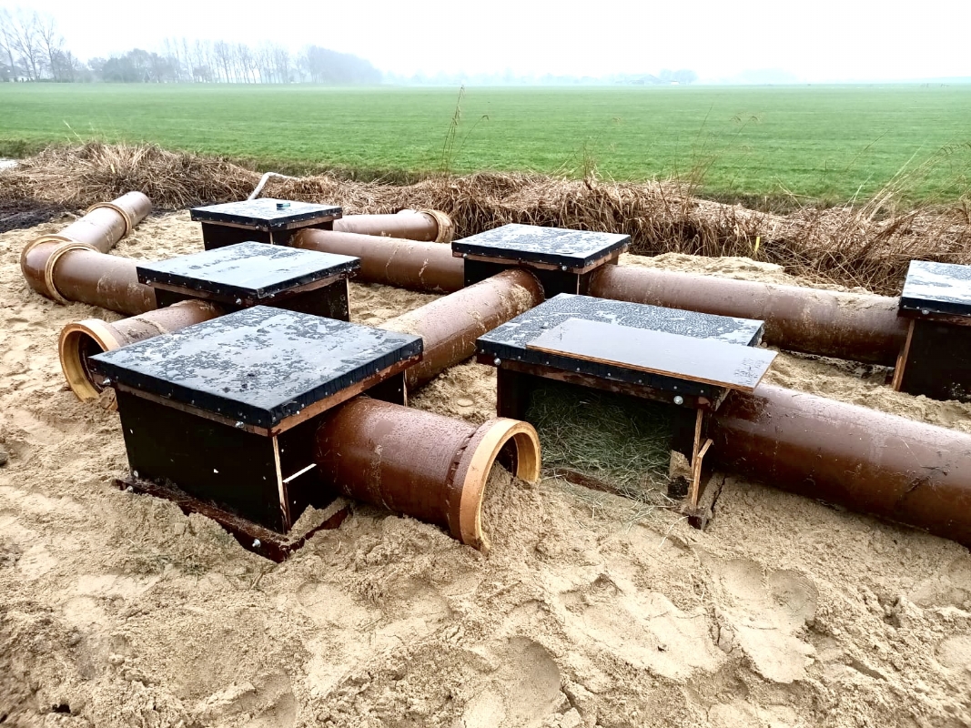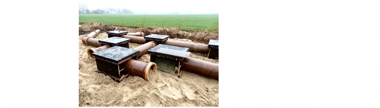 Fotos van de aanleg van een tijdelijk kunstburcht, makkelijk te transporteren, gebruikt om uitgezette weesdassen een paar maanden te huisvesten, totdat ze zelf een burcht ontdekt of gegraven hadden